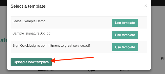Then click the "Upload new template" button to upload the pdf directly into the template list.