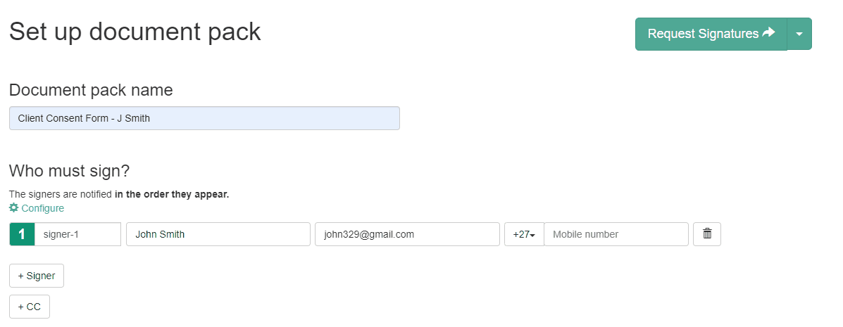 - Where required, update the signer's contact details. The system will detect the change and send a new signing request to your signer automatically: