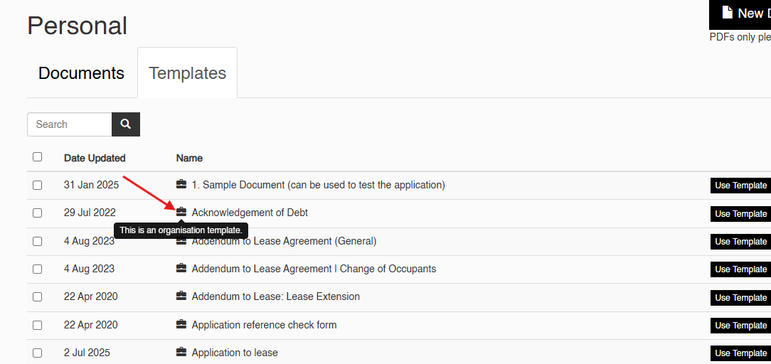 If your organisation makes use of QuicklySign Enterprise (Fully whitelabeled/branded version), you may have access to templates that are prepared by Head Office for organisation-wide use. This ensures you're working with the latest version of the required templates which streamlines your setup process.