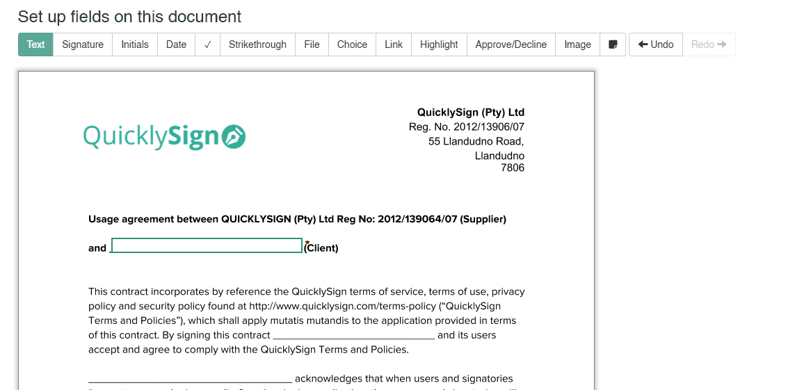- If not available during setup, please contact our Solutions Team via the in-app chat or Support@quicklysign.com.