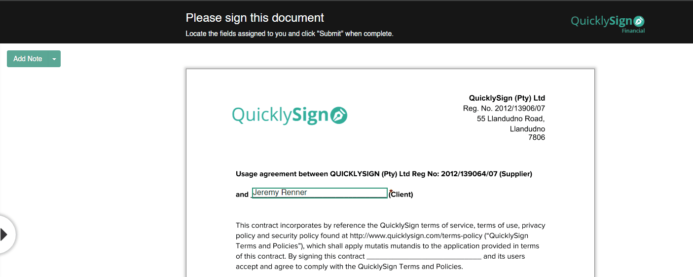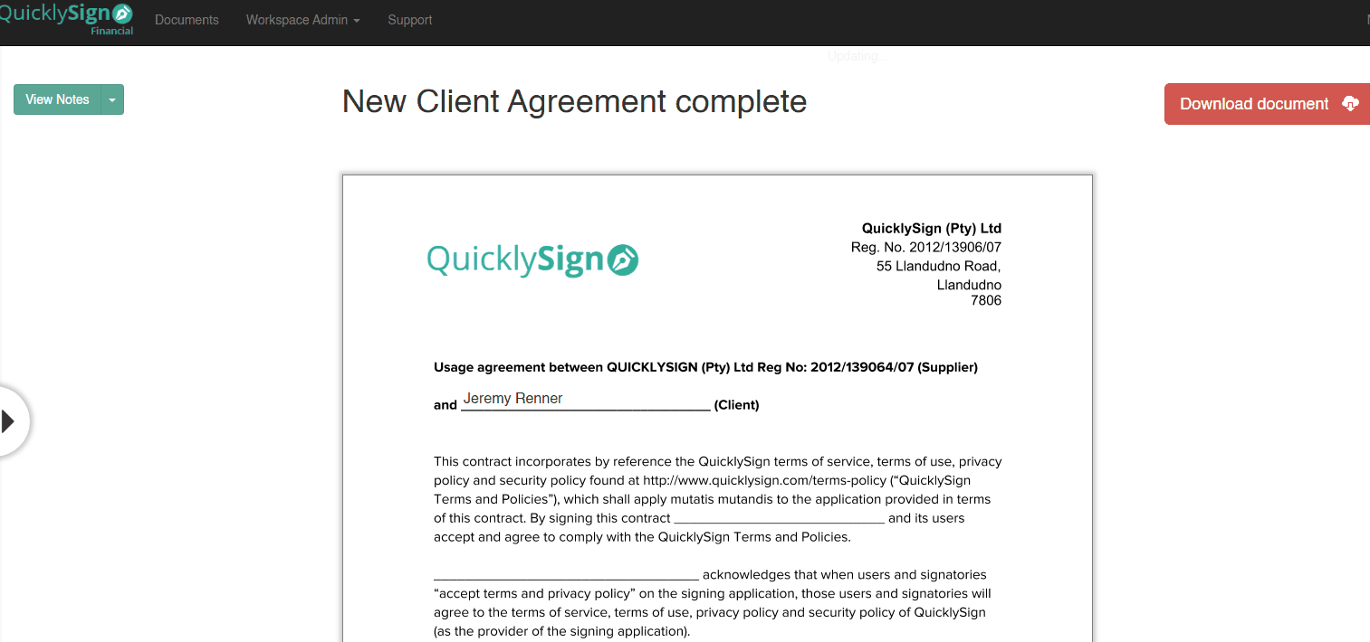 - Private notes remain exclusive to the sender to view within their QuicklySign account.